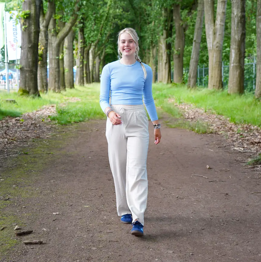Daarom doet de blonde Noord-Hollandse nu ook niet mee aan de Europacup Inline in Heerde. Na het eindexamen heeft ze een beetje gas teruggenomen, want ze wil uitgerust aan haar globetrottersavontuur beginnen. In plaats van met een verhit koppie over de Veluwse piste te vliegen volgt ze vrijdag, zaterdag en zondag met haar ouders langs de baan de verrichtingen van onder anderen broer Chris, en vertelt ze ongetwijfeld Jan en alleman over de aanstaande reis naar het Zuid-Amerikaanse land waar skeeleren bijna een religie is.