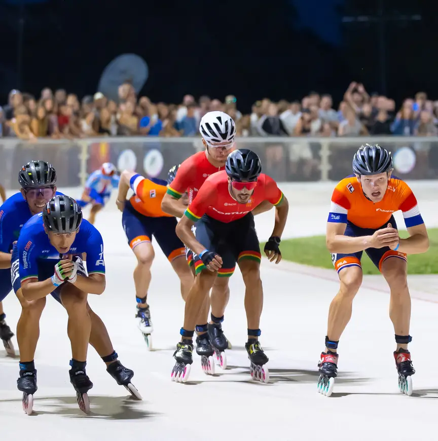 Maar wat het inlineskaten echt magisch maakte, beleefde ik pas toen ik deze zomer in het zuiden van Frankrijk verslag mocht doen van het EK Inlineskaten in Valence d'Agen. Qua medailles geen succesvolle expeditie voor de troepen van Bondscoach Valentina Berga-Belloni, maar wel eentje waar de spektakelsport optimaal in de etalage gezet werd. Vooral de laatste avond van het baantoernooi, toen de relay-finales gehouden werden, was een spektakelstuk. Toen werd mij duidelijk waarom zovelen enthousiast zijn over deze sport. Enorme snelheden, katachtige manoeuvres, gewaagde acties om de tegenstander een hak te zetten. Gesneden koek voor de kunstenaars op wielen, een lust voor het oog voor de honderden toeschouwers aan de kant van de parabolische baan.