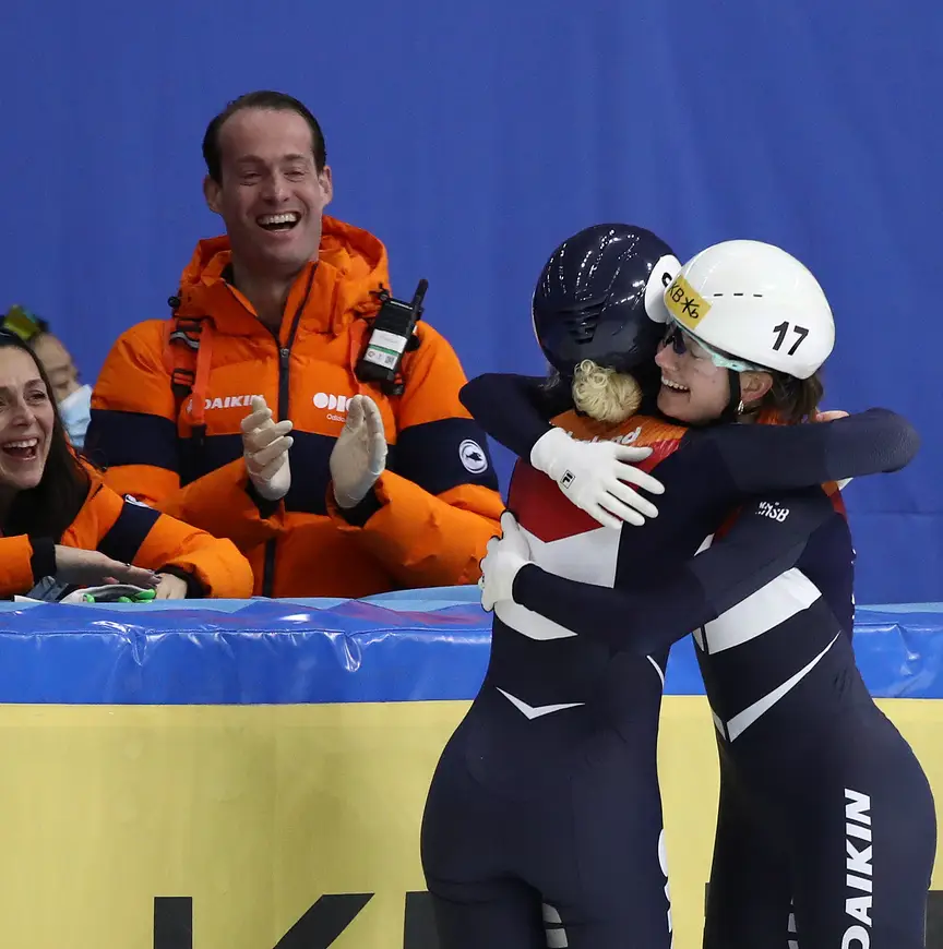 Op het ijs van het ietwat verouderde maar niet minder sfeervolle Mokdong-stadion – ze bevond zich inmiddels in Seoul – volgde een week verder in de tijd de Grote Verlossing, of Bevrijding, zo je wilt. De wedstrijd werd een kopie van alle voorgaande wereldbekerweekends. Vlugger dan het licht was ze vertrokken, nóg gedecideerder om niemand meer te laten passeren. Velzeboer inbegrepen. Driekwart minuut later voltrok zich een unicum: twee Nederlandse winnaressen op een individueel nummer.