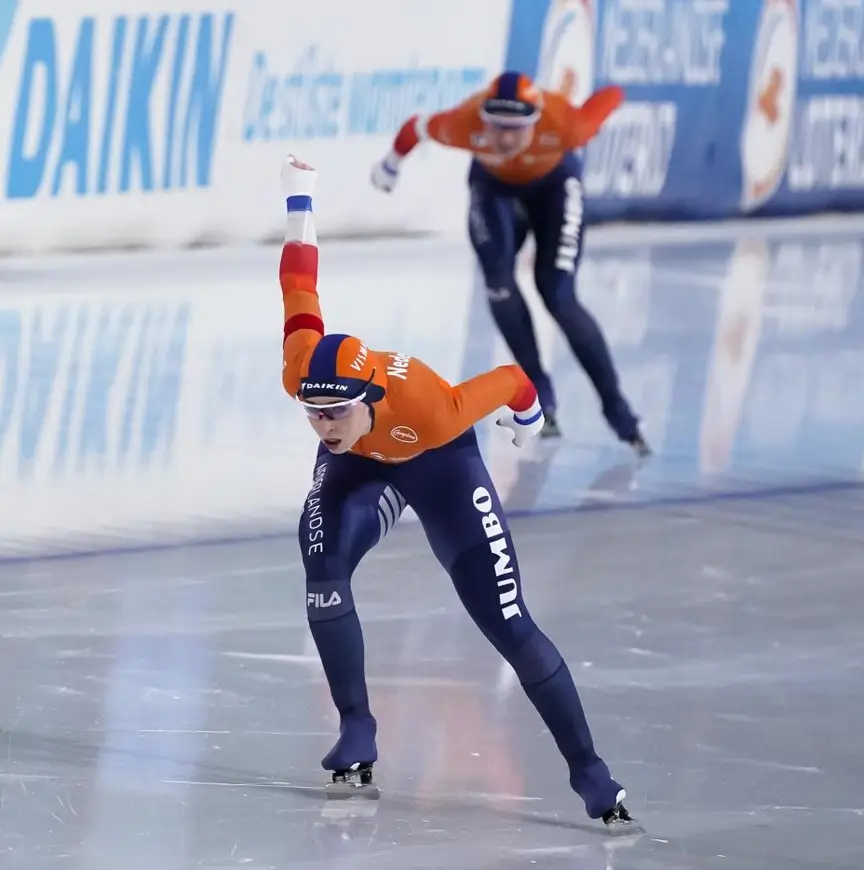 De Jong kon er mee leven dat ze nu op de tweede plaats eindigde. Met haar ploeg Jumbo-Visma hebben ze de afgelopen weken tijdens de wereldbekerwedstrijden hard doorgetraind met het oog op de WK Afstanden over twee weken. "Met die vermoeidheid nu in mijn lichaam rust ik uit en dan word je er beter van", legt ze uit. "Nu zit je misschien op tachtig procent qua prestaties en dat wil je naar de honderd krijgen. Ik ben benieuwd of dat ook gaat gebeuren."