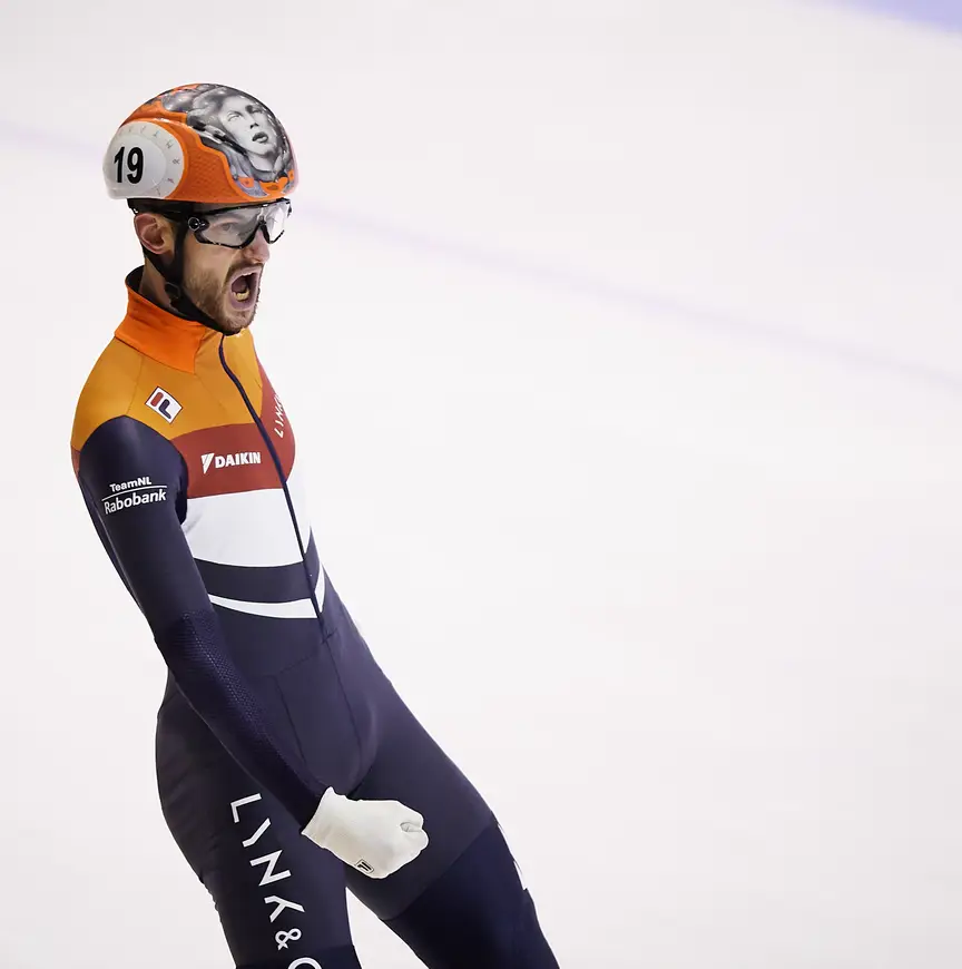 Met een bronzen medaille staat De Laat voor het eerst op een individueel EK-podium. "Uiteindelijk heb ik een stabiel toernooi gereden. Vorig jaar werd ik vierde en nu derde, dat is toch weer een plekje hoger." De Leeuwarder weet dat hij altijd beter uit de verf komt op internationale wedstrijden. "Ik heb blijkbaar zo'n toernooi nodig om aan mezelf te bewijzen dat ik gewoon fucking goed ben. Normaal heb je daar de wereldbekerwedstrijden voor, maar die zijn weggevallen. De nationale wedstrijden gingen niet geweldig, het NK Allround was net als vorig jaar weer waardeloos (De Laat werd zesde, red.). Gelukkig heb ik me daardoor niet laten afleiden en stond ik er. Dit is een goede warming-up voor de WK in Dordrecht."