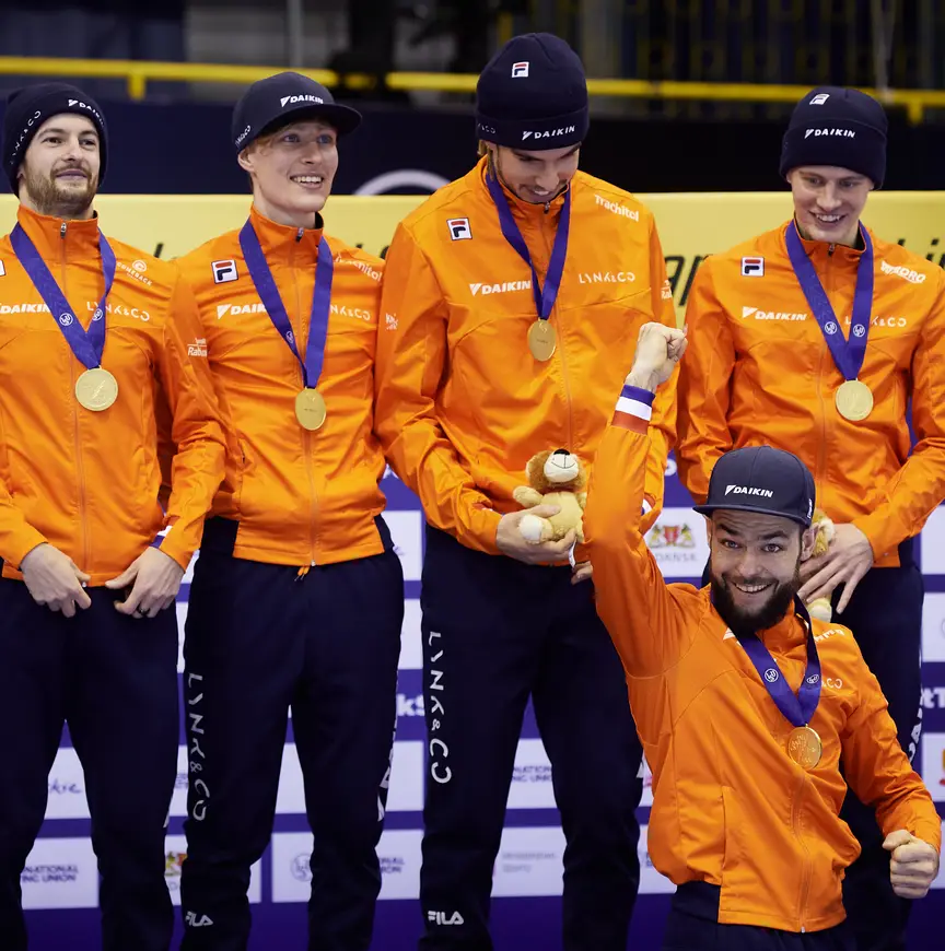 Op de relay kregen jongelingen Friso Emons (21) en Jens van 't Wout de kans om ervaring op te doen. Routinier Daan Breeuwsma bleef als reserve achter in Nederland. De 19-jarige Van 't Wout reed alle races op het EK, van de kwartfinale tot de finale. Hoogerwerf en Emons werden afwisselend ingezet naast Knegt en De Laat. "Ik vond het ontzettend spannend, het was heel anders dan in de trainingen", vertelt Van 't Wout over zijn EK-debuut. "In de finale werd ik door twee mensen ingehaald en riep Jeroen (Otter, red.): 'Jens, het is wel een wedstrijd!' Ik moest even focussen, maar als je eenmaal aan het schaatsen bent, kom je in een zone. Ik ben nog nooit zo blij geweest met een overwinning", jubelt hij.