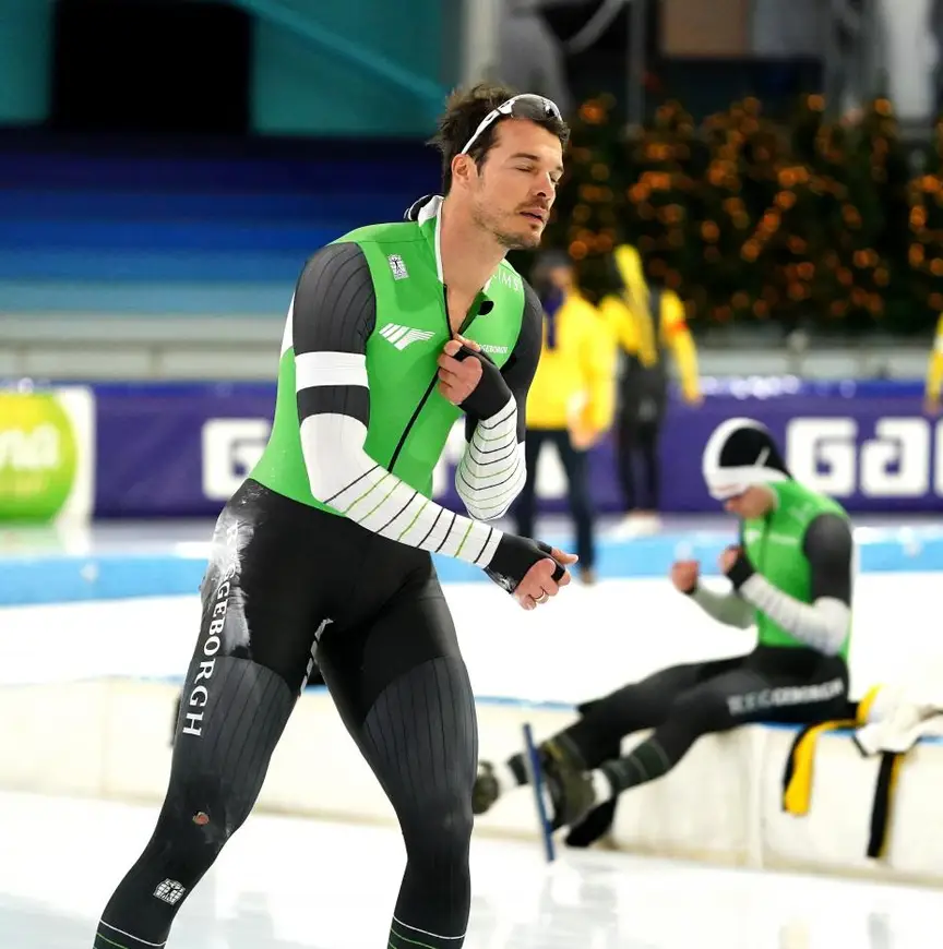 De tegenstander van de boomlange sprinter, die op de 500 meter jammerlijk ten val kwam, is zijn ploeggenoot Kjeld Nuis. De twee dertigers van Team Reggeborgh moeten daarna afwachten wat hun tijd waard is. Thomas Krol en Merijn Scheperkamp komen direct nadien in actie, waarna Kai Verbij en Serge Yoro in de laatste rit hun aanval wagen op de snelste tijd.