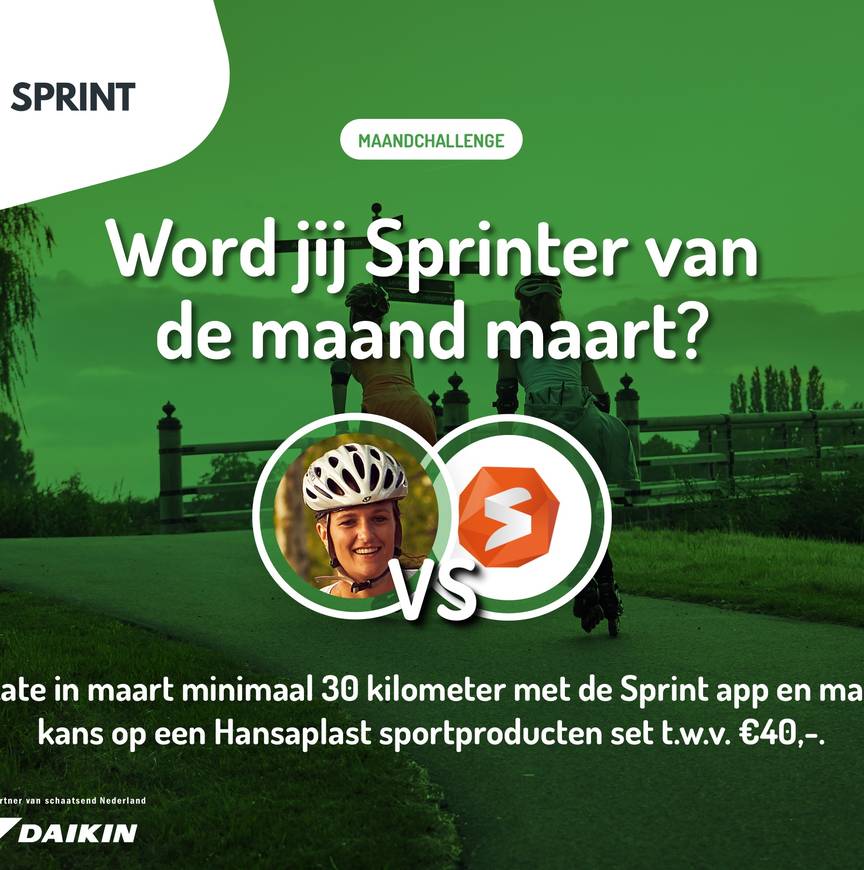 In maart gaan we op zoek naar een nieuwe Sprinter van de maand en de Maandchallenge luidt als volgt: Skate in maart minimaal 30 kilometer in de Sprint app en maak kans op een Hansaplast sportproducten set t.w.v. 40 euro.