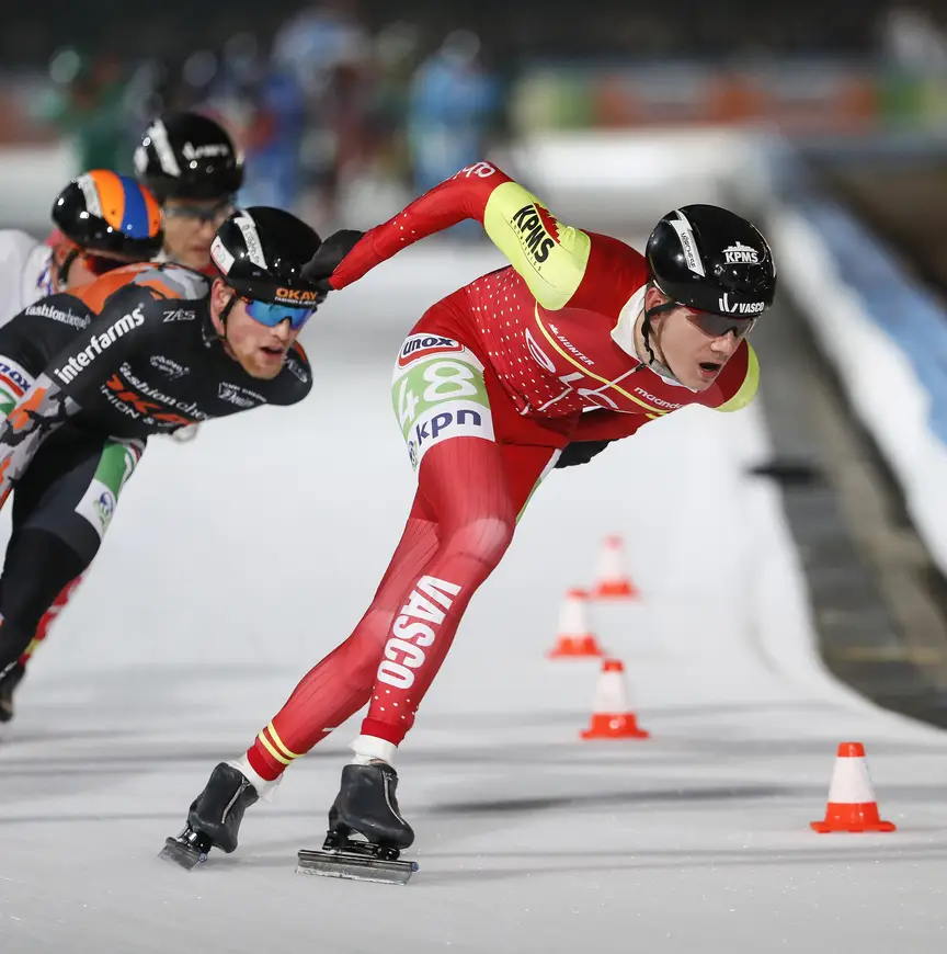 Voor Robert Post was het scenario ideaal. Zeven mannen met een ronde voorsprong, van wie hij op papier de snelste man was. Maar een valpartij van Simon Schouten bezegelde ook het lot van Post. Hij ging mee tegen het ijs en was op slag kansloos.