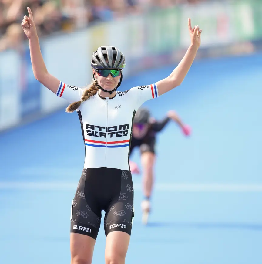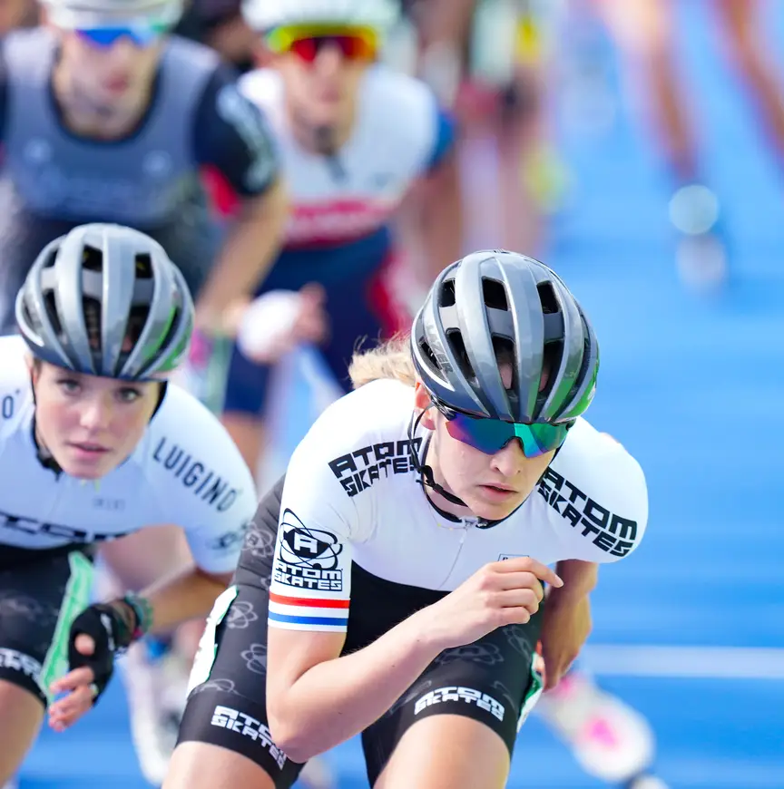 De 21-jarige inlineskatester werd vorig jaar drievoudig Nederlands kampioene, als eenling. “Ik houd wel van uitdagingen. Daarom vind ik het interessant om in mijn eentje tegen beteren of tegen blokken te rijden.”