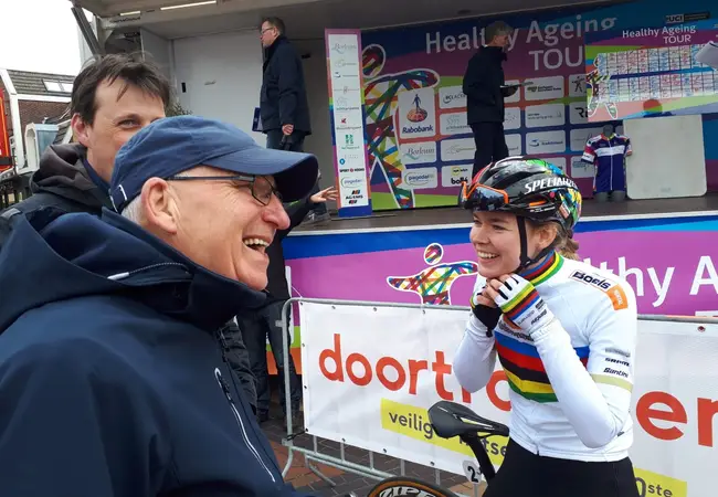 De contacten zal hij het meest missen, maar als er een marathon in de buurt is en de energie goed, zal het zeker tot een retourtje ijsbaan komen. Daarnaast laat Nieuwenhuis de microfoon nog niet geheel los. Als het nog kan, is de speaker actief bij de wielerronden in het noorden van het land. “Hier ligt mijn basis. Zodra ik denk: Het wordt me te pittig, dan schakel ik een tandje terug. Ik heb wedstrijden afgeschaald naar de regio. Als het niet meer lukt, is er de nieuwe generatie die het naadloos overneemt. Dat is een prettige gedachte.” En mocht de Tocht der tochten ooit weer komen, dan maakt de 74-jarige graag een uitzondering. “Zolang ik nog kan praten en er een stoel staat waar ik op kan zitten, dan ben ik erbij. De collega’s zullen dan opereren in de frontlinie en ik lever de verhalen en informatie. De anekdotes van vroeger doen het nog steeds uitstekend. Ook alle details op de route heb ik scherp voor de bril: de bruggetjes, sluizen, boerderijen etc. Ik hoop dat de tocht er over een niet al te lange tijd komt.”