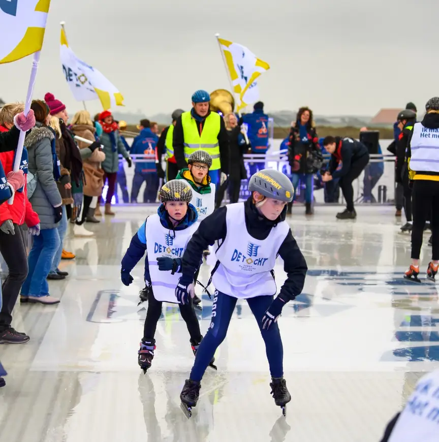 De foto's van Vincent Riemersma spreken voor zich. Een schip met een geïmproviseerde ijsvloer waarop kinderen en enkele voormalige helden uit de wedstrijd (o.a. Rein Jonker, de nummer 2 van de race in 1986) rondjes schaatsen; het Friese dweilorkest ‘De Menamer Feintsjes’ dat aan boord de unieke sfeer van het evenement oproept.
