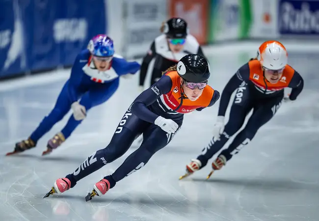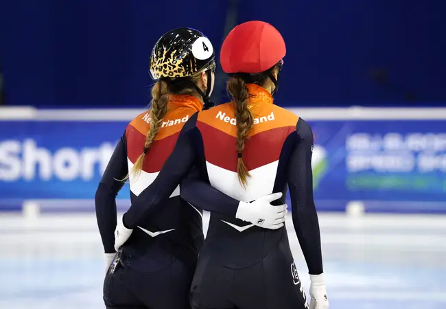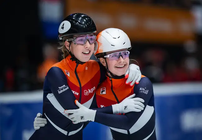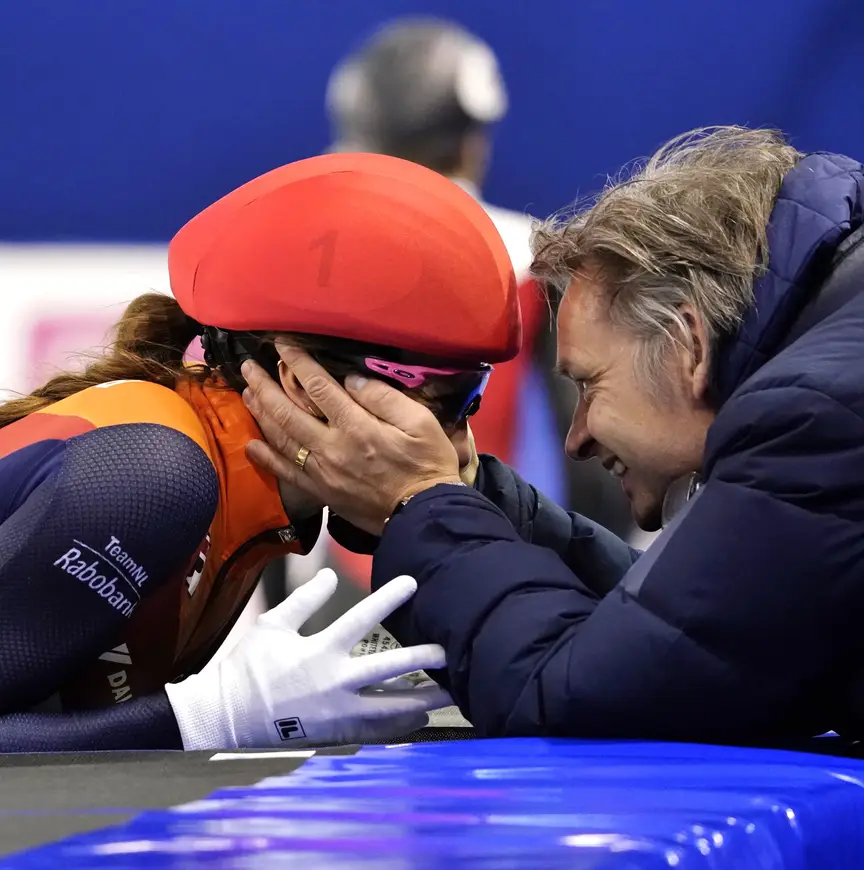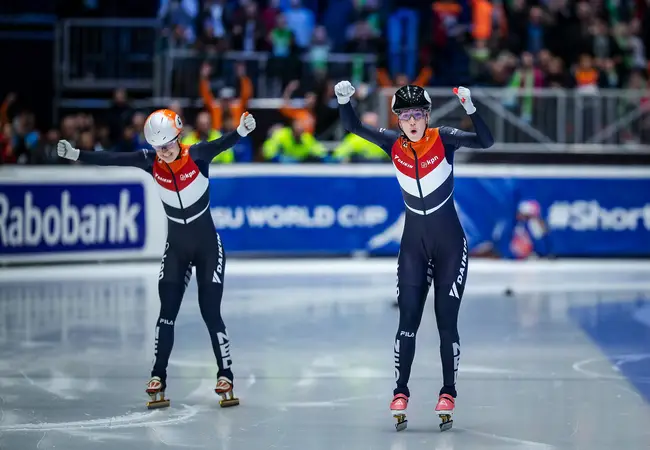 "Op de World Cup-finale in Dordrecht moest het gebeuren voor onze shorttrackers en de druk was ongelooflijk hoog. Op de 500 meter reden Lara en Yara naar de eerste en tweede plek. In Nederland is shorttrack helaas nog niet op het niveau van langebaan in de zin van dat zoiets wel vaker gebeurt. Elke medaille die wij scoren is nog steeds heel waardevol. Een dubbelslag voor Nederland blijft uniek en als je dat in eigen huis kunt doen, is dat helemaal geweldig. Vooraf bespreek ik de rit wel met beiden en soms is een blik al genoeg, maar tijdens de wedstrijd coach ik één rijdster.