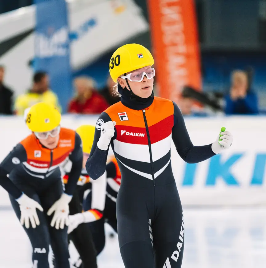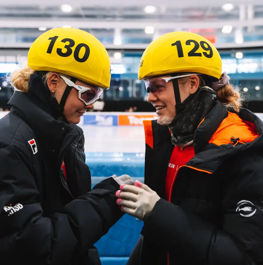 “Ik heb er veel aan om elke dag te trainen met de dames van Shorttrack TeamNL, het zijn echt wereldtoppers. Wel moest ik even wennen om met mijn zus op het ijs te staan. We hebben vroeger met elkaar geschaatst, maar al lange tijd niet meer samen getraind. Daarnaast wonen we in één appartement, dus zie je elkaar vaak. Dat kan weleens tot irritaties leiden, maar niets wat we niet op kunnen lossen hoor,” vertelt Michelle lachend.