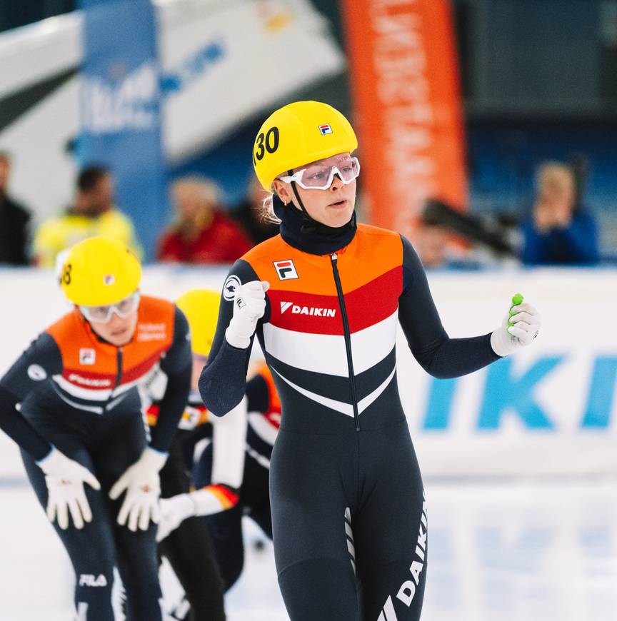 Bij afwezigheid van Suzanne Schulting de afgelopen dagen – door een bijholteontsteking moest de veelvraat verstek laten gaan – kon de oudste van de zusjes Velzeboer haar visitekaartje afgeven aan de nieuwe bondscoach. Met twee overwinningen en een tweede plaats op de 1500 meter liet ze een sterke indruk achter.