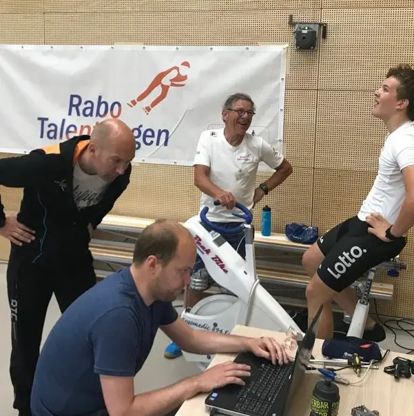 Er is ook nog een zesde test die de schaatsers ondergaan, maar deze is geen onderdeel van de Talentdagen. De VO2max-test wordt namelijk op een apart moment ingepland. Bij deze test wordt de maximale zuurstofopname van de sporter getest. Dit gebeurt door een inspanningstest, waarbij de sporter een continue inspanning moet leveren, maar waarbij de weerstand telkens wordt opgevoerd. Hierdoor raak je dus echt buiten adem. Als onderdeel van de Talentdagen worden ook video-opnames gemaakt bij het NK voor junioren. Op basis daarvan kan weer een analyse gemaakt worden van de schaatstechniek.