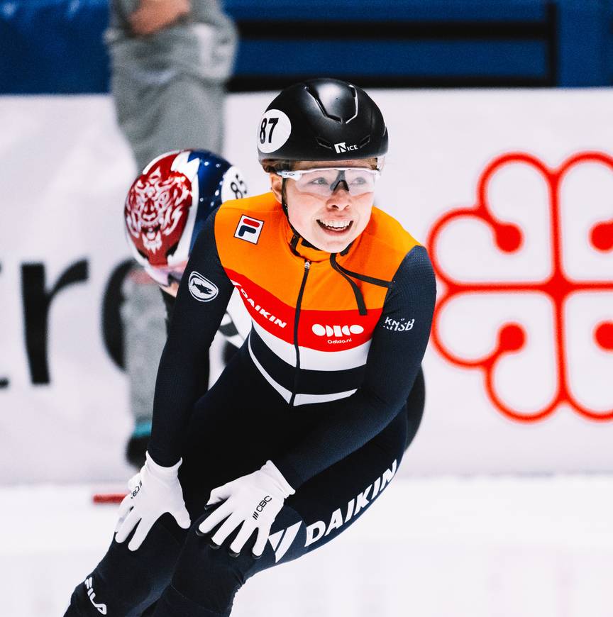 Zaterdagochtend mocht Diede van Oorschot als een van de eersten het ijs op. “Door een val op vrijdag moest ik de herkansingen van de 1500 meter rijden. Ik was heel blij toen ik me plaatste voor het hoofdprogramma.” Een chaotische halve finale volgde, waarin Van Oorschot een beukje uitdeelde aan de Canadese Blaise. “Er gebeurde heel veel in die rit. Ik was als derde over de streep gekomen, alleen wist ik wist niet zeker of mijn actie goedgekeurd zou worden en of een Italiaanse bestraft zou worden voor een andere actie.” In het gunstigste scenario zou Van Oorschot door zijn naar de A-finale, maar een diskwalificatie of een B-finale was ook reëel.