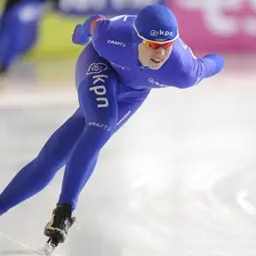 Wesly Dijs in actie op de Hoornse ijsbaan De Westfries