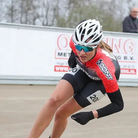 "Vier. Een marathon rijd ik altijd met drie wielen, omdat het gewoon harder gaat, maar vier wielen vind ik fijner. Op de baan rijden we altijd op vier wielen, want drie is daar verboden en ik denk ook niet dat het ooit zal mogen. Hoe dat zou voelen? Ik heb het nog nooit uitgeprobeerd, dus geen idee!"