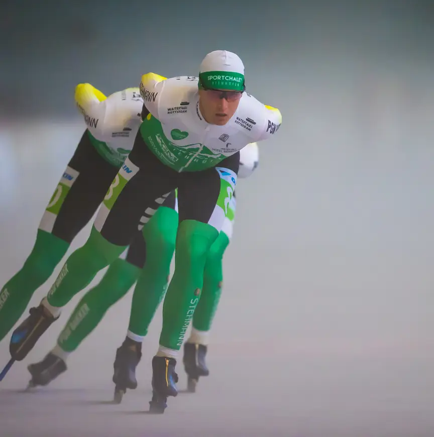 Da’s Douwe, door de ogen van ploegleider Kurt Wubben: het is een treffende schets van een jongen met veel meer potentie dan hij zelf in de gaten heeft. “Och, man”, hij reed vorig jaar in de voorbereiding al rondetijden die hetzelfde waren als de Topdivisierijders. Toen zeiden we in de ploeg al: ‘Douwe, er is geen mens die weet hoe hard jij schaatst. Daar heb je een keer profijt van, en dat is in de eerste wedstrijd van de marathoncompetitie. In Amsterdam demarreerde hij kort na de start, pakte twee ronden voorsprong en won de race.” Wubben schudt er zijn hoofd bij. "Geloof me: die vent kan heel goed worden in de Topdivisie. Althans, als hij er met z'n hoofd een beetje bij kan blijven."