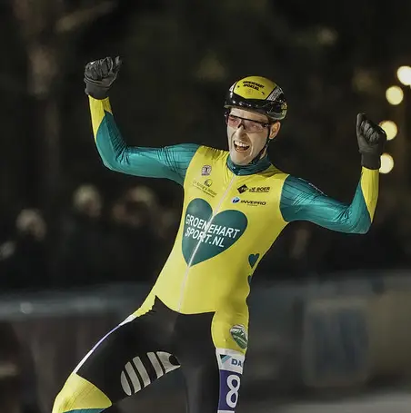 Even nagenieten van de primeur in oktober '21? Uit het verslag van deze site op die avond: ‘Boonstra (22) maakte er een prachtshow van. Na vijf ronden in de koers van de beloften ontsnapte hij (‘Ik hoorde iedereen roepen dat ik moest springen; dat deed ik toen maar’) en kreeg hij vier anderen mee. Het vijftal werkte prima samen, reed een voorsprong van driekwart ronde bij elkaar, waarna ploegleidster Linda Bouwens van Groenehartsport.nl het team opdracht gaf een man te laten afzakken. De student bewegingswetenschappen voelde zich evenwel zo sterk dat hij zelf het gat naar de staart van het peloton dichtte. Barstend van de energie slaagde Boonstra er naderhand opnieuw in, met hulp van Richard van Schie, een nieuwe vluchtersgroep te achterhalen. Leon Wenteler stak ook nog een handje toe om voor de tweede keer in het peloton te ‘landen’.’