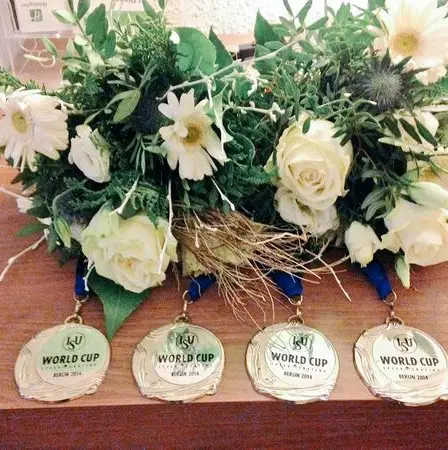 Heather Richardson reed in Berlijn haar eerste World Cups van het seizoen en met succes. De Amerikaanse rijdster uit de Clafis-ploeg van Jillert Anema veroverde vier zilveren medailles. Voor haar reden genoeg voor een fotomomentje.