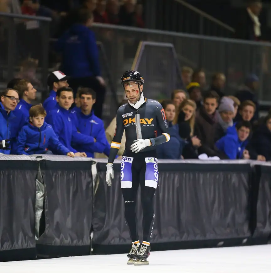 Erben Wennemars werd zondag veertig jaar, maar kwam zaterdag bij de KPN Marathon Cup in de Beloftedivisie in actie. Daarbij kwam hij niet bepaald ongehavend uit de strijd.