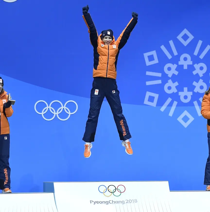 Iedereen die Carlijn Achtereekte als gouden medaillewinnares had opgeschreven in zijn Olympische Spelen poule kon na dit weekend cashen. De rijdster uit Lettele kreeg na haar indrukwekkende overwinning op de 3000 meter zaterdag op Medal Plaza de allereerste gouden medaille van de Olympische Spelen uitgereikt. Geflankeerd door Ireen Wüst en Antoinette de Jong deed Achtereekte een prachtige vreugdesprong!