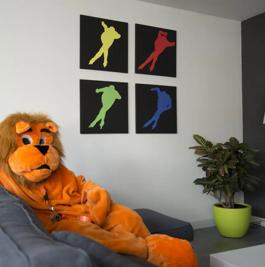 Wie het schaatsen volgt heeft hem waarschijnlijk al eens gezien: 'Dutch Lion'. De fanatieke oranjeleeuw woont in hartje Utrecht en wie het hol van de leeuw betreedt ziet het direct; we hebben hier te maken met een groot schaatsfan. Aan de muur hangt een vierluik zelfgemaakte schaatssilhouetten en op de kast staan de allereerste entreetickets van het NK Allround in 2007 netjes ingelijst. “Ik ben afgelopen seizoen bij alle wedstrijden geweest”, zegt de Lion trots. “Ik ben zelfs nog naar de tien kilometer van Bob de Jong in Haarlem geweest en naar het Brits/Deens kampioenschap in Den Haag.”