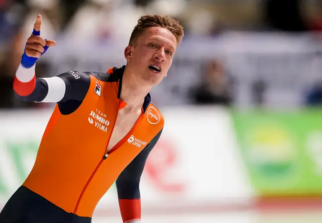 Omdat Ted-Jan Bloemen de eerste twee wereldbekers had overgeslagen, had hij een wildcard nodig om te mogen starten in de A-groep van de 5000 meter. Het gebrek aan punten in het klassement bracht hem in de eerste rit. Om het ijs de tijd te geven na de dweilpauze deed Bloemen een ‘Kramertje’. De veelvoudig kampioen maakte gedurende zijn carrière vaker expres een valse start, zodat het ijs een extra minuutje kreeg om te drogen voordat de Nederlander eroverheen zou vliegen. Maar het is natuurlijk geen risicoloze actie. Dat ondervond Bloemen…