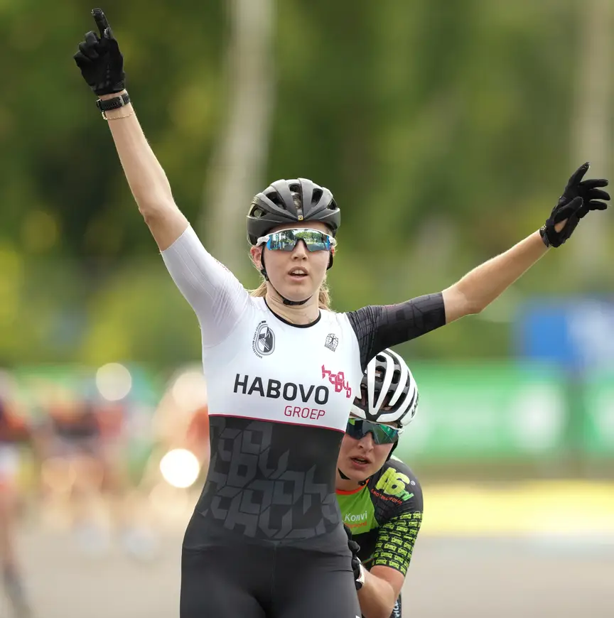 “Morgen begint mijn toetsweek met scheikunde, en ik weet niet of ik er helemaal klaar voor ben”, bekende ze met zachte stem. Rolt ze er maar net zo makkelijk door als in de slotronde van de halve marathon…. dat had een peuleschil geleken. Onderweg naar de finale zoveel mogelijk proberen te plakken achter de sterkere vrouwen en dan, zodra de sprint zich zou aandienen, hoog bovenin door de laatste bocht knallen. “Was een tip van Manon (Kamminga, red.), zij is mijn coach in het KTT Talententeam waarin ik zit. Leuk dat het me lukte…” Ze glimlachte, en wist niet hoe ze moest kijken. “Minder leuk dat dit mijn enige wedstrijd was van de Vierdaagse. Manon zei dat ik het beter rustig aan kon doen, omdat ik de afgelopen dagen al veel heb gedaan, en volgende week wacht het NK.” Ja, en nog een handvol toetsen, niet te vergeten.