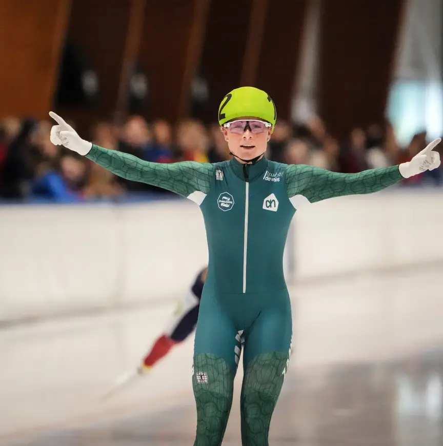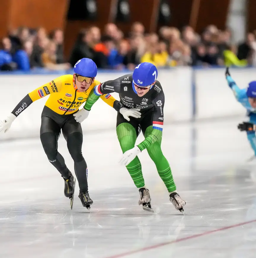 Derks lachte. “Patrick (Roest, red.) smeet behoorlijk met zijn krachten”, doelend op het vele kopwerk dat de allrounder verrichtte. “En dat na de pittige training van deze ochtend.” Roest bereikte de finale dan ook niet. Hij eindigde als zevende, waar de eerste zes van de drie heats tot de eindstrijd konden doordringen. “Maakt niet uit. Hij is op grond van zijn resultaten van vorig seizoen toch zeker van deelname aan het NK mass start.”