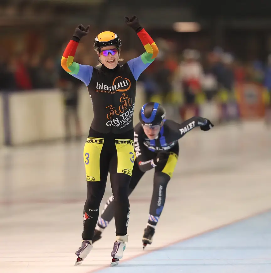 Dat kwam er dus niet van. In de drie ronden finale was Pruisscher gewoon wat slimmer dan Jonkers. ’’Ik kan dit ook niet goed’’, erkende die. ’’Ik wilde hier vanavond wegrijden en dat is gelukt. Sprinten is dan niet mijn specialiteit.’’ Ook niet van Pruisscher, maar die had wel wat ervaring met finales, ook al is dat op de fiets. ’’Ik ben van oorsprong wielrenner en van daaruit ken ik het spelletje wel een beetje. In de finale wilde ik achter haar blijven zitten, er dan in de laatste ronde overheen komen, de binnenkant houden en dan maar kijken wie er wint.’’