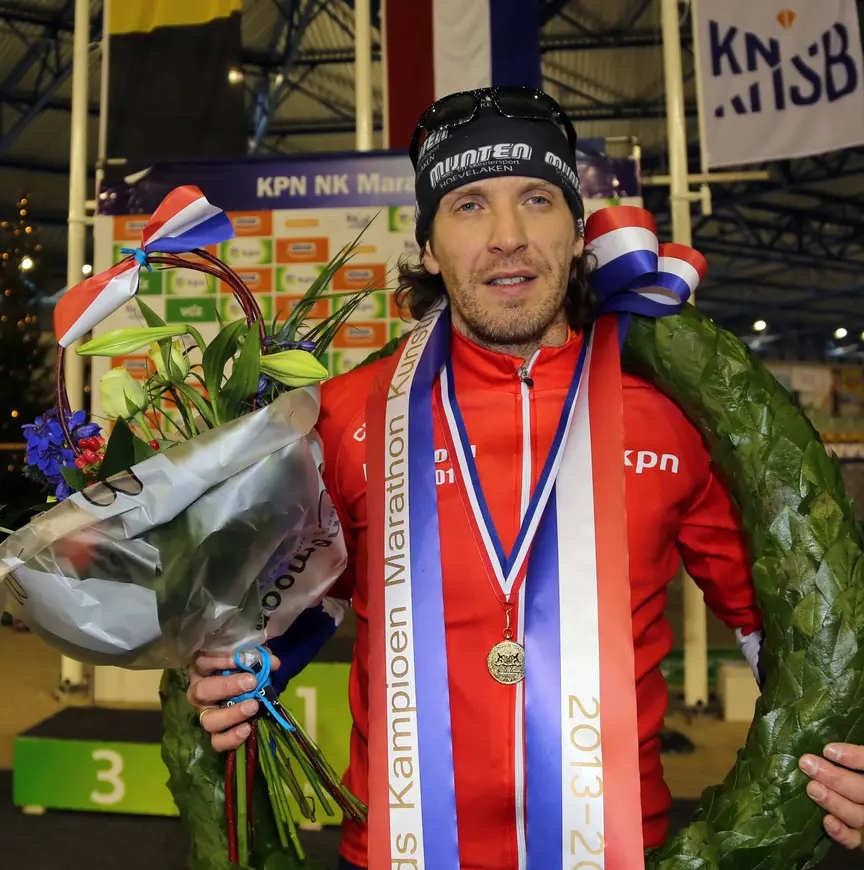 Zo vierde Gaasenbeek als 44-jarige de eerste nationale titel in zijn loopbaan. Vorig seizoen was hij daar op natuurijs ook al dicht bij, maar destijds eindigde hij als tweede. "Daar ben ik echt ziek van geweest. Hoe vaak krijg je nou de kans op een Nederlandse titel? Ik dacht echt dat mijn kans verkeken was. Maar een jaar later sta je hier dan toch met die krans om je schouders, alleen op kunstijs. Daar had ik echt nooit op gerekend."