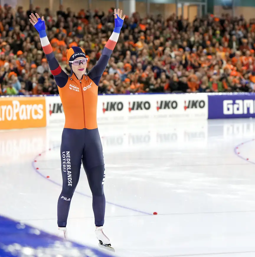 De eerste seizoenshelft was niet om over naar huis te schrijven voor de hardrijdster uit de stal van Jac Orie, tot enkele weken geleden liep het - vooral technisch - niet. Tijdens het NK reed ze haar beste seizoenstijd. Het bleek een voorbode op wat ze zaterdag aan het eind van de middag op het ijs legde in de rit tegen Marijke Groenewoud. “Eindelijk een fijne tegenstander”, reageerde de vrouw van Jumbo-Visma. “Hier had ik echt wat aan, zij zweept je op en inspireert je. Dat is leuk, mooi om er zo’n rit van te maken.”