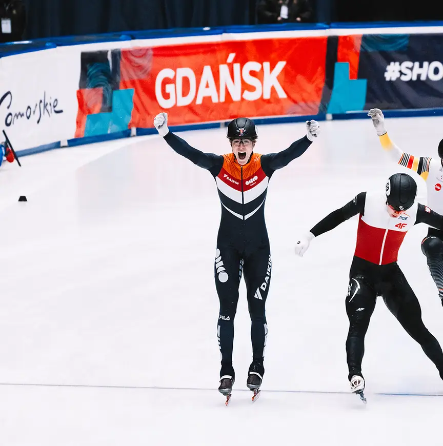 Die van het kwartet Xandra Velzeboer - Selma Poutsma – Kay Huisman – Teun Boer kende aan het slot het hoogste thrillergehalte van de drie matinées op het bleek wit uitgeslagen schuurpapier in Hala Olivia van Gdansk. De gehele wedstrijd leidde Oranje vrij eenvoudig, totdat het spel de laatste ronden inging. De intensiteit nam zienderogen toe, de dreiging van de Italiaanse armada, met de nauwelijks te pareren ‘lichtflits’ Pietro Sighel als afmaker van die ploeg, werd ondraaglijk groot. Teun Boer had ook de kriebels, dat kon niet anders na de wijze waarop Sighel hem zaterdag in de finale van de 500 meter op de valreep te grazen had genomen.
