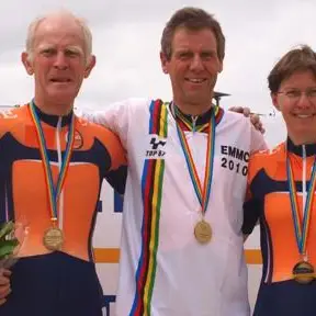 De Nederlandse medaillewinnaars van het EK in 2010: Herman Pouwels (brons), Albert Bakker en Karen Teuling (brons).