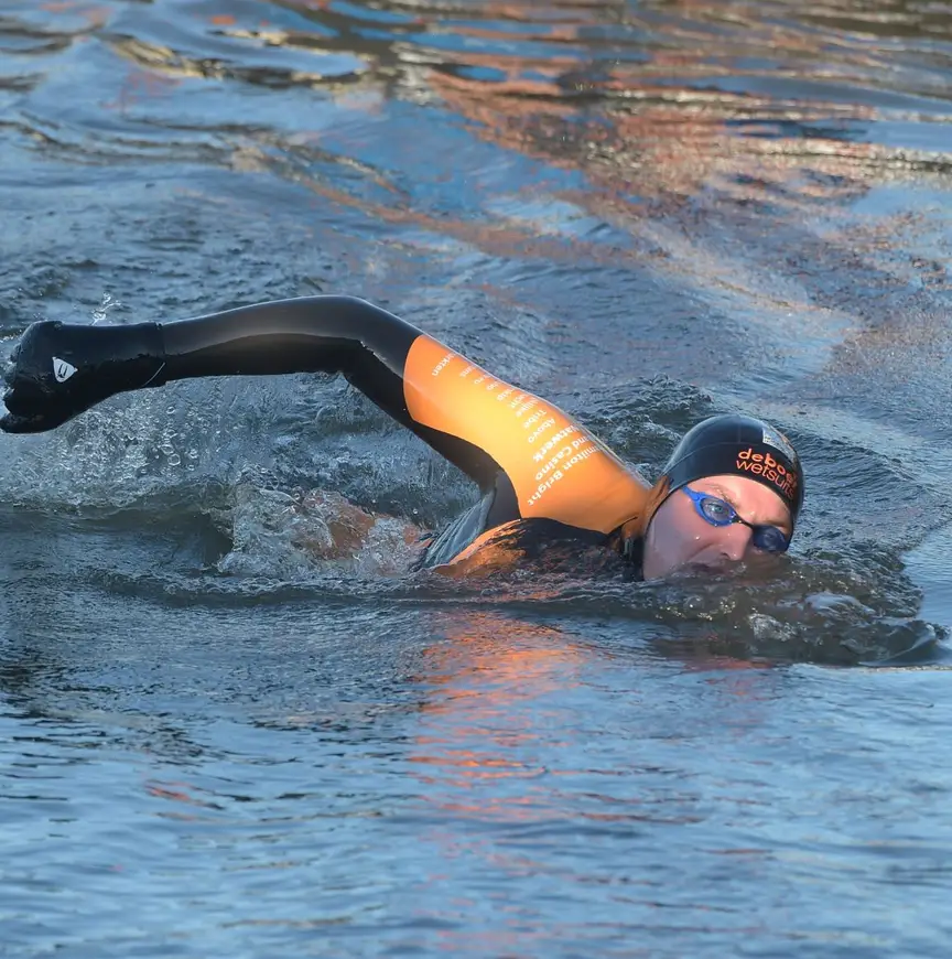 Eén van de deelnemers is Kay van der Kooi, de man van Paulien van Deutekom, die dit jaar al een stukje meezwom met Van der Weijden. Daarnaast zullen onder meer Mathijs van Nieuwkerk, Claudia de Breij, Syb van der Ploeg (in januari reed hij de Alternatieve Elfstedentocht op de Weissensee uit) en René en Natasja Froger het water induiken. "Ik ga coachen, maar als het nodig is dan spring ik het water in en dan sleur ik ze door het water heen, want we moeten het gewoon halen", aldus Van der Weijden.
