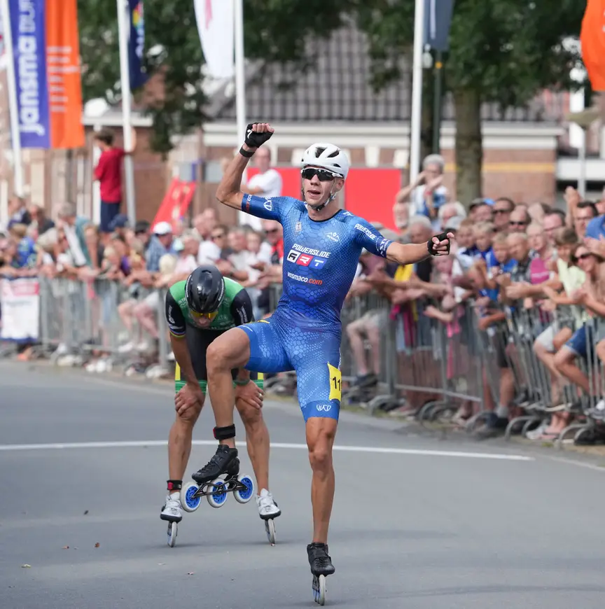 En zo klonk aan het einde van de middag het Belgisch volkslied en werd het rood-wit-blauw om de schouders van de Belg Bart Swings gehangen, die zich nu op mag maken voor het EK Inlineskaten begin september.
