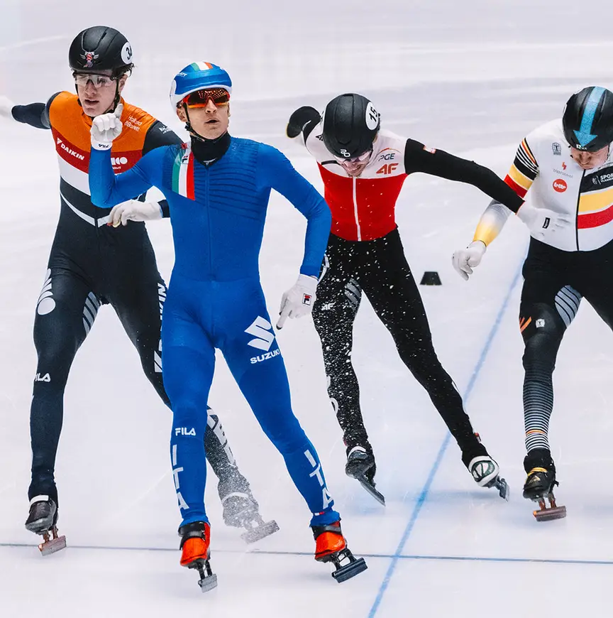 Dat etiketje plakte hij, iets minder overtuigend, op de ontknoping van de 500 meter voor de mannen. In de hoofdrollen: Teun Boer en wederom Pietro Sighel. De Nijmeegse debutant legde een plaatje van een rit op het werkijs. Sighel kwam, Boer ving hem op. Een tweede aanval pareerde hij minder attent. “Pietro kwam langszij, dat voelde Teun. Hij liet hem niet uitwaaieren, reed redelijk krap de bocht door. Alleen niet krap genoeg als je honderd procent zeker weet dat de ander binnen zit. Pietro was er vlak na de bocht voorbij, en zat weer heel krap. Ongelooflijk knap. Zo’n manoeuvre kunnen Jens en Pietro. Verder niemand. Maar ik denk ook: godver, dat zijn die kleine dingetjes waardoor we nu drie keer naast goud grijpen. Het heeft met ervaring te maken.”