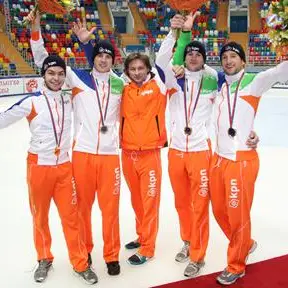Nederlandse shorttrackers sluiten wereldbekerserie af met vijf medailles. Foto: gouden mannenploeg van de World Cup in Moskou