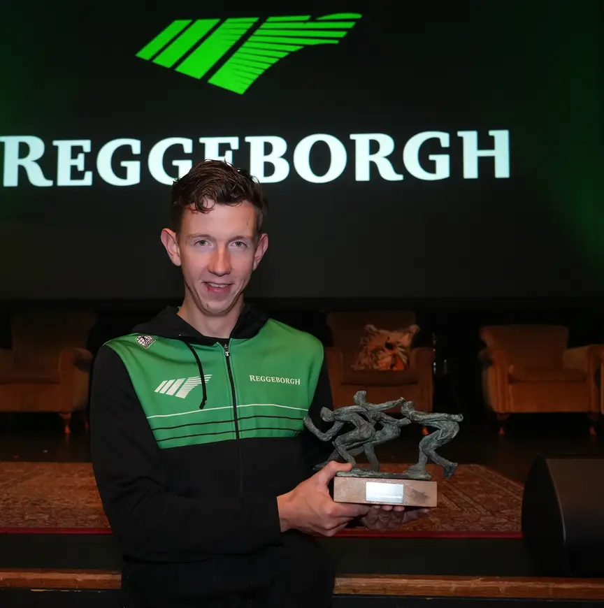 Evert Hoolwerf nam zijn beeld donderdagavond in ontvangst in Rijssen, tijdens de ploegpresentatie van Team Reggeborgh, waar hij deel van uitmaakt. “Je krijgt deze prijs als je hebt laten zien dat je kan winnen op natuur- en kunstijs, en als je klassementen kan winnen. Evert voldoet aan al deze criteria”, aldus Hut.