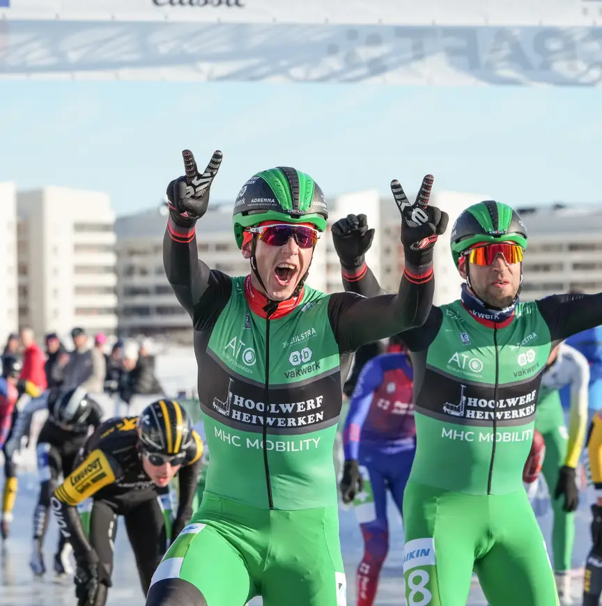 De negen mannen werden echter al vrij snel weer tot de orde geroepen, waarna Bart Hoolwerf op de sprinttreinen van andere ploegen probeerde mee te liften. Met zijn tweede plek nam hij de leiding over in het klassement voor de natuurijs Grand Prix. "Het is altijd mooi voor het team en de sponsoren als je eerste staat in zo'n klassement. De 200 wordt lastig, maar als ik een goede dag heb en ik kom hem goed door, kan er misschien nog een verrassing komen."