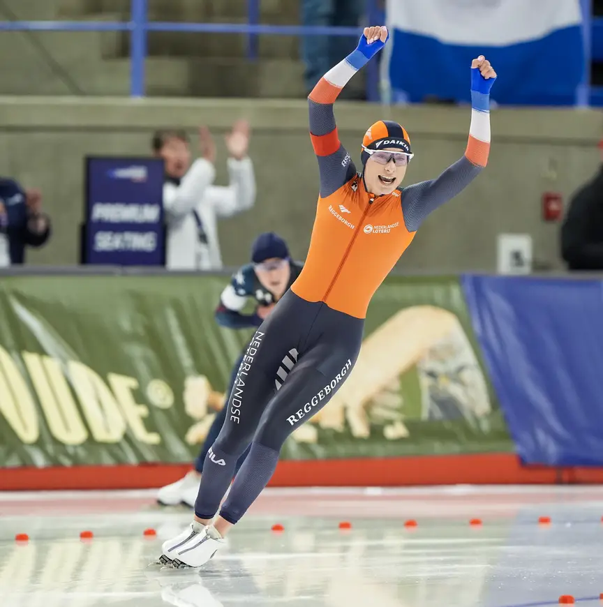 Nou, Femke Kok is ook megagoed. Een jaar na haar WK-zege in Heerenveen – in haar optiek mooier dan de gouden rit van vrijdag in Calgary – waren de verwachtingen hooggespannen. “Er kwam best veel op me af, maar ik bleef dezelfde Femke. Genoeg mensen kwamen deze week nog naar me toe: ‘Je gaat winnen’. Maar dan dacht ik: O, moet er eerst nog wel voor rijden.” Met haar nieuwe status als topsprinter moest de Nij Beetse ook leren om te gaan met die druk. “Ik liet me niet gek maken, dit moet ik kunnen. En dat heb ik vandaag laten zien.”