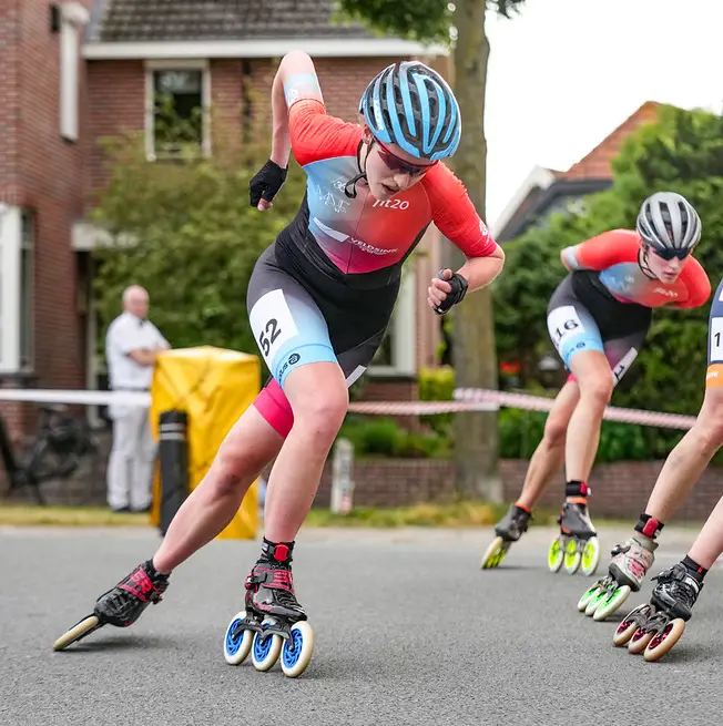 Dat idee deelt haar teamgenote Thirza Gorkink uit Vaassen (Gelderland) die alle acht marathons tot aan de finale zaterdag in Oldebroek heeft gereden. “Vorig seizoen deed ik alleen mee aan de landelijke wedstrijden in de buurt, maar omdat ik in Team Magnifiek terechtkwam ben ik de focus meer gaan leggen op de Reggeborgh Cup. Ik wilde beter worden, wat ook is gelukt want ik kon in een aantal races goed meekomen en meedoen. Vorige week stond ik zelfs voor het eerst aan de start van het ONK in Hallum. Zo is het deze zomermaanden een mooie training geworden voor de winter, wanneer ik er weer in de marathons voor de Beloften bij ben”, licht ze toe. Mocht de Reggeborgh Cup in 2024 ingekrompen worden, dan vult Gorkink haar eigen kalender wel weer aan met de regionale wedstrijden om de Free-wheel Inline Cup.