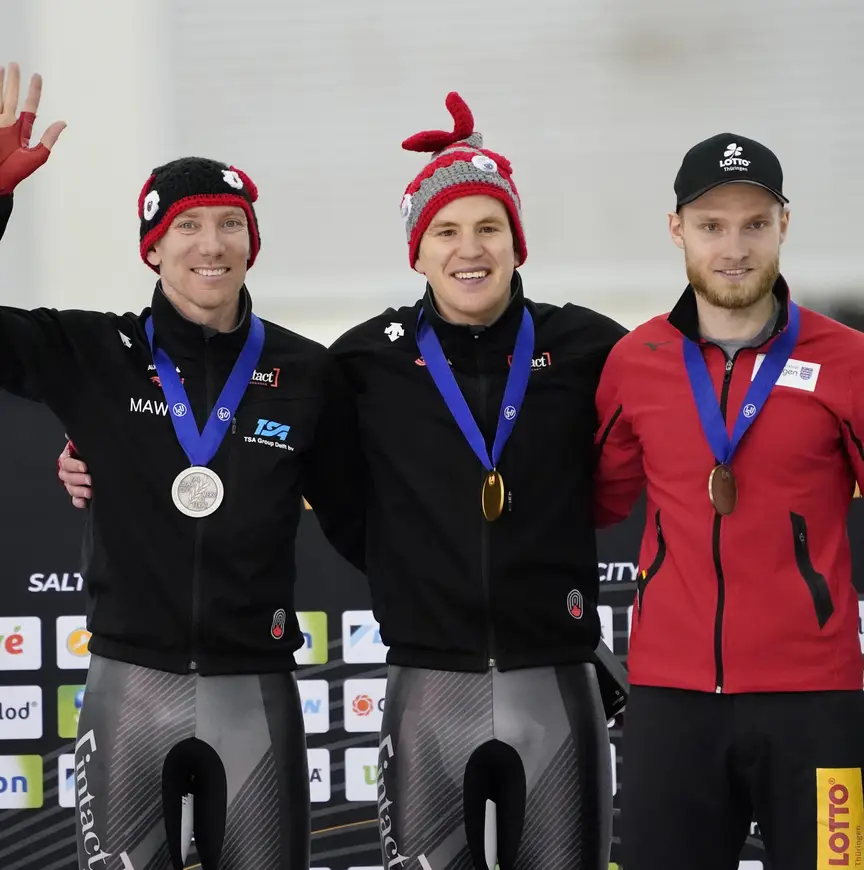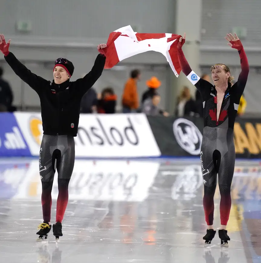 Als hij toen eens had geweten dat zijn eigen naam de volgende dag ook de geschiedenisboeken in zou gaan. Het is de eerste keer sinds de eerste editie van de WK afstanden in 1996 dat de 10.000 meter niet door een Nederlander wordt gewonnen. Deze winter behaalde de jonge Canadees, die Nederlander Bart Schouten als coach heeft, al wel twee keer brons in de wereldbeker op de vijf en tien kilometer. Na zijn optreden tijdens de World Cup op zijn thuisbaan vorig weekend begon het vertrouwen richting de mondiale titelstrijd te groeien. “Toch is het is heel gek dat ik hier vorig jaar zevende en veertiende werd en nu goud en brons pak. Dit moet ik doorzetten.”