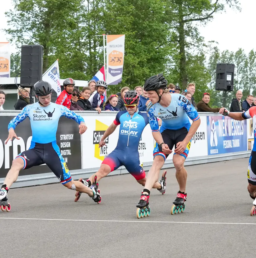 Rick Schipper over zijn gouden race: “Het was een mooi ‘racie’. Ik moest even kijken hoe het ging lopen. Kay en ik hadden al afgesproken dat hij of ik druk zou houden om de race zo snel mogelijk open te gooien. Ik startte op plaats drie. Dat is niet heel gunstig voor mij. Gelukkig kon ik een inhaalactie opzetten en kon ik binnendoor direct twee voorbij. Vervolgens was het nog kijken waar Kay zat. Daar had ik geen idee van, dus ging ik de bochten uit versnellen, zodat ik niet meer gepakt kon worden. Bij de finish keek ik achterom en zag ik dat Kay het geflikt had om er ook voorbij te komen op deze krappe baan. Het is een sport waarbij je op de limieten zit. Je moet dan ook maar de creativiteit vinden om er voorbij te komen. Ik ben blij dat Kay dit ook gelukt is.”