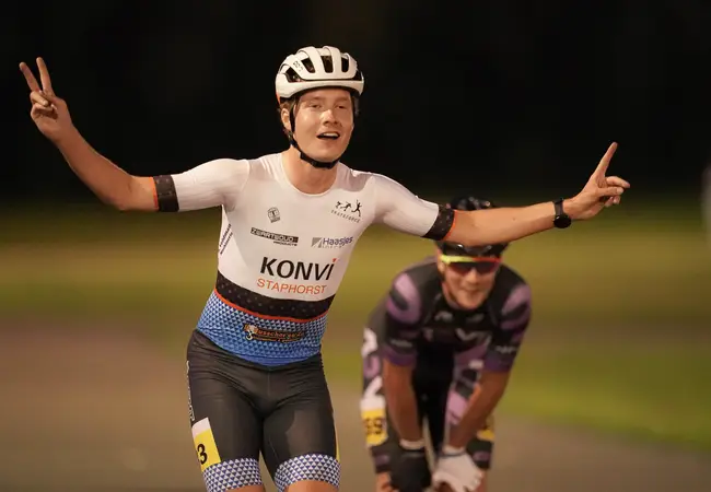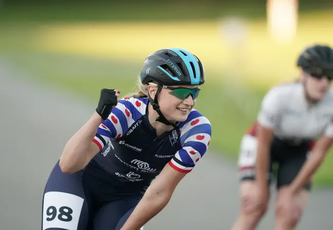 “Als je internationaal wat wilt halen, moet je minimaal het niveau halen van vorig jaar", gaat hij verder. "Dat red je niet met landelijke baanwedstrijden, daarvoor heb je wel een NK nodig. Daar ga je toch meer voor doen.” Gelukkig kon hij ook tijdens de coronamaanden bouwen op zijn ploeg. Ondanks de strenge regels hadden ze enige houvast aan het team en dat lijkt de rijders geen windeieren te hebben gelegd. Met Klijnstra en Vonk werden namelijk nog twee zeges binnengesleept. De zege van Vonk kreeg extra glans doordat met Fleur Veen en Maya de Jong ook de twee andere plekken op het podium door een ploeggenoot werden bezet.