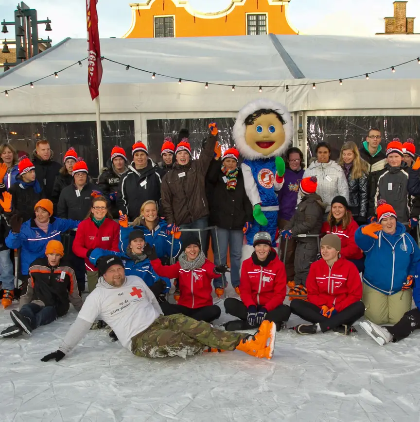 Er is aangepast materiaal en er zijn veel enthousiaste begeleiders zodat iedereen op zijn/haar eigen niveau kan leren schaatsen