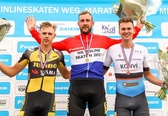 Voor de bronzen Mulder voelde zijn medaille als een kleine overwinning. De 23-jarige inlineskater kampt sinds een jaar met een zeldzame vorm van kanker en boekte ondanks die ziekte in mei zijn eerste marathonzege. In Utrecht pakte hij zaterdagavond zijn eerste NK-medaille. Door een bericht in een landelijke krant kreeg zijn prestatie zaterdag toch weer een extra lading. "Heel Nederland las het en ik kreeg zo veel berichtjes. Ook in slechte vorm kun je dan hard rijden." Op het podium moest hij dan ook even een traantje wegpinken. "Brons met een gouden randje klinkt wel een beetje cliché", zegt hij nuchter na de huldiging. "Dat ik op zo'n klein stukje derde word is geen schande. Ik ben blij met mijn medaille."
