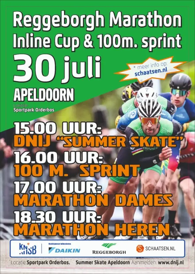 De SUMMER SKATE start om 15:00 uur. Kleedgelegenheid en douchemogelijkheid is bij SV Orderbos. Alle deelnemers ontvangen een stempelkaart en na afloop een medaille. Vooraf opgeven is nodig. Dat