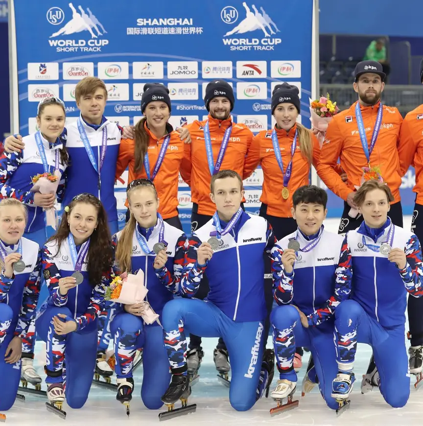 Toen ook de Canadese Alyson Charles aan kop weggleed, werd het een tweestrijd met Rusland. Met een fraaie actie slaagde Schulting er in de slotfase wel in om langszij te komen. In de laatste ronde herstelde De Laat op geweldige wijze zijn verloren koppositie en wist op de streep nipt de Rus Viktor An van zich af te houden. Na het bekijken van de videobeelden werden zowel Canada als de Verenigde Staten gediskwalificeerd voor een verkeerde aflossing.