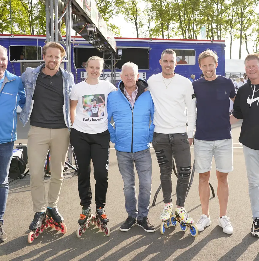 Michel Mulder, niet alleen olympisch kampioen, maar ook wereldkampioen op wielen en ijs verliet opgetogen de piste na zijn ereronde. “Dit is de club waar ik groot geworden ben. Tegelijkertijd voelt het ook een beetje gek. In januari 2020 ben ik gestopt, maar vanwege corona is er niet eerder gelegenheid voor een afscheid in het inlineskaten geweest. Ik vind het hartstikke leuk dat ze er alsnog aandacht aan besteed hebben.”