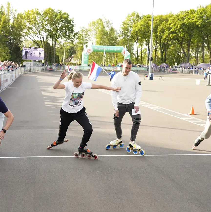 Burgmeijer maakte meteen van de gelegenheid gebruik om Bianca Rooseboom te huldigen als erelid van Skeelerclub Oost Veluwe. Het emotioneerde haar, waarna ze het publiek kort toesprak. “Het doet me heel goed dat ik nu erelid ben van deze club. Ik wil iedereen bedanken. De club, mijn familie, vrienden, teamgenoten, sponsoren. Deze sport doe je niet alleen. Je doet het met z’n allen. Dan kom je tot succes.” Met afsluitende dankwoorden verzekerde ze de aanwezigen dat ze in de skeelersport blijft als coach.